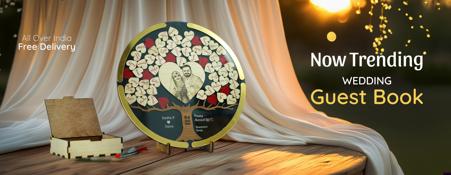 Customised Wedding Guest Book Frame | Wooden Photo Engraved | 60 Love Leaves