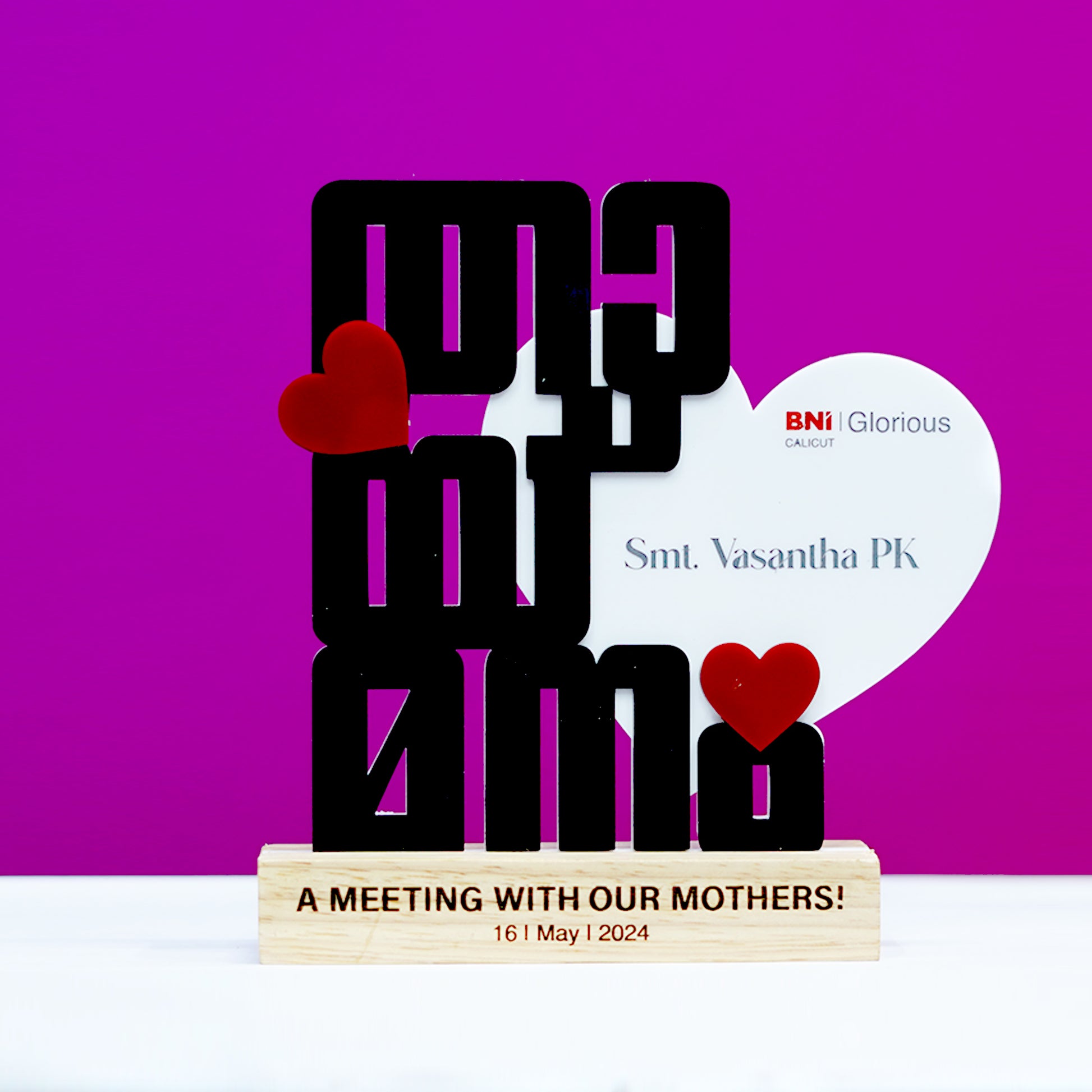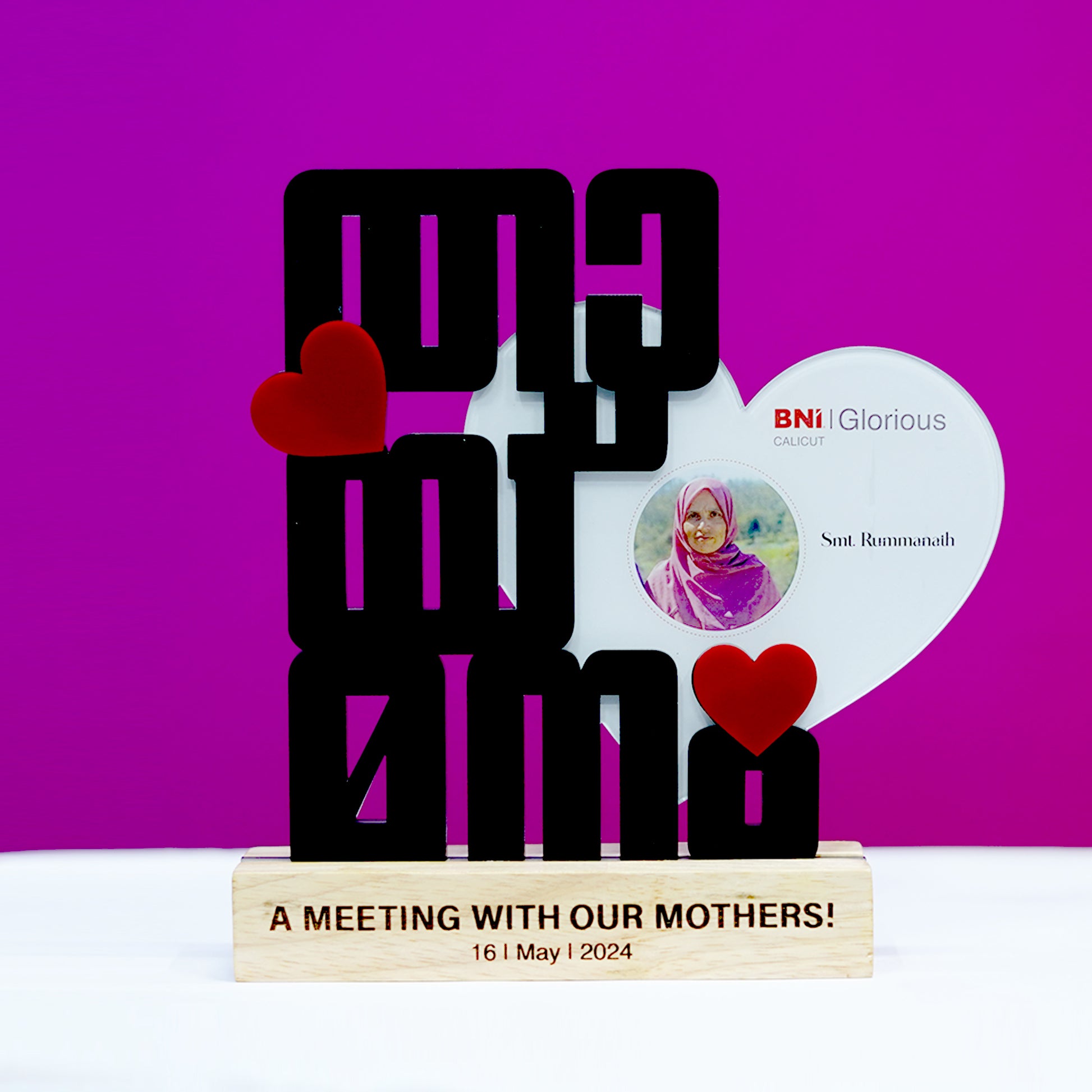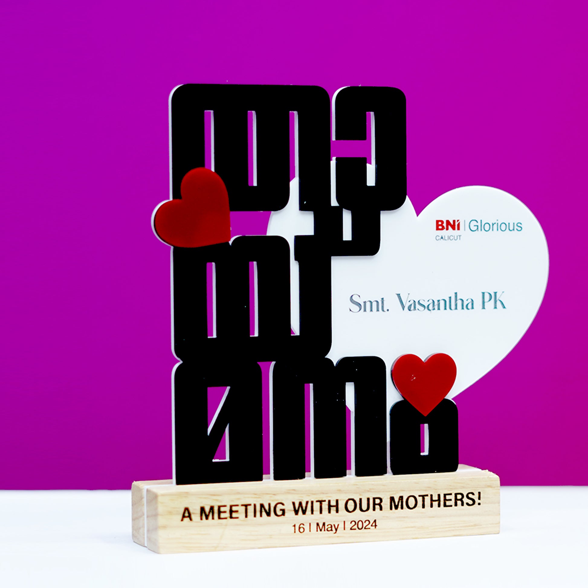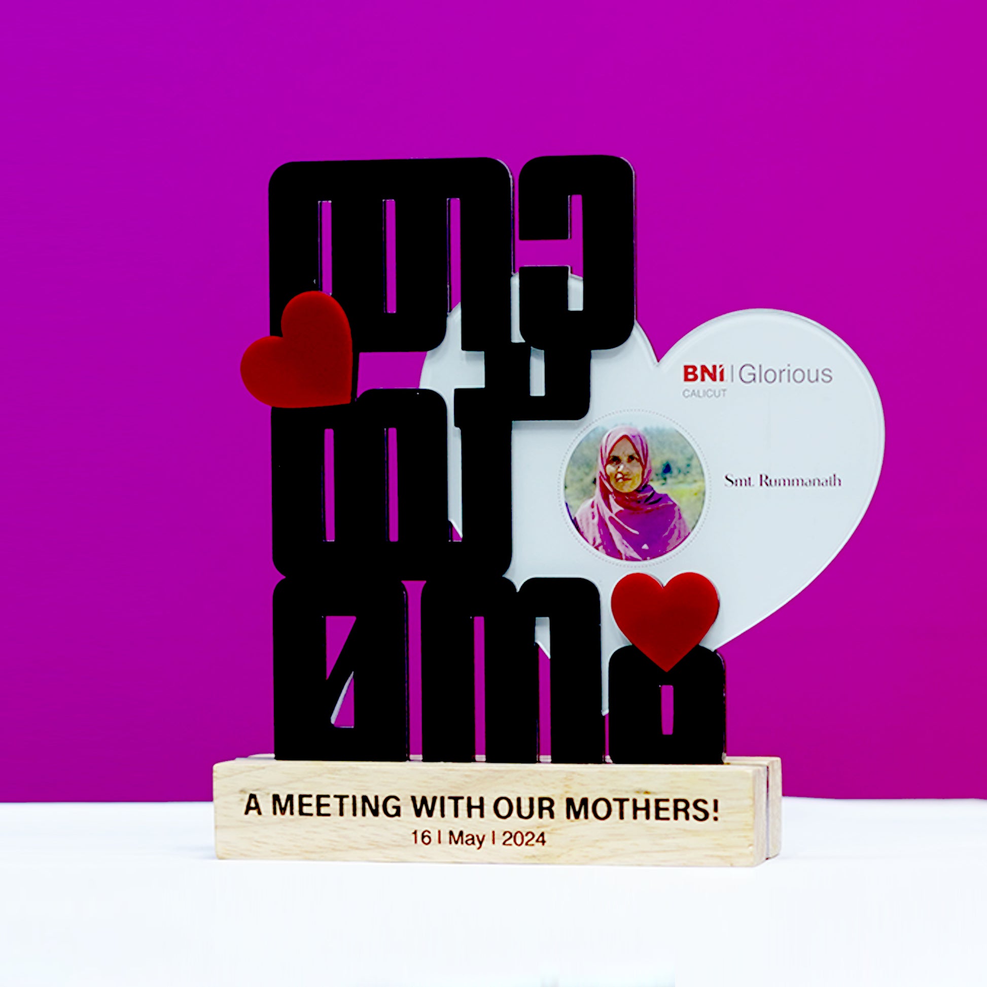 This beautifully crafted memento is designed to honor and celebrate special occasions, making it the perfect keepsake for award ceremonies, milestone achievements, or as a token of appreciation. The memento combines elegance and durability, featuring high-quality wood, acrylic, and a decorative sticker that adds a touch of personalization and charm.