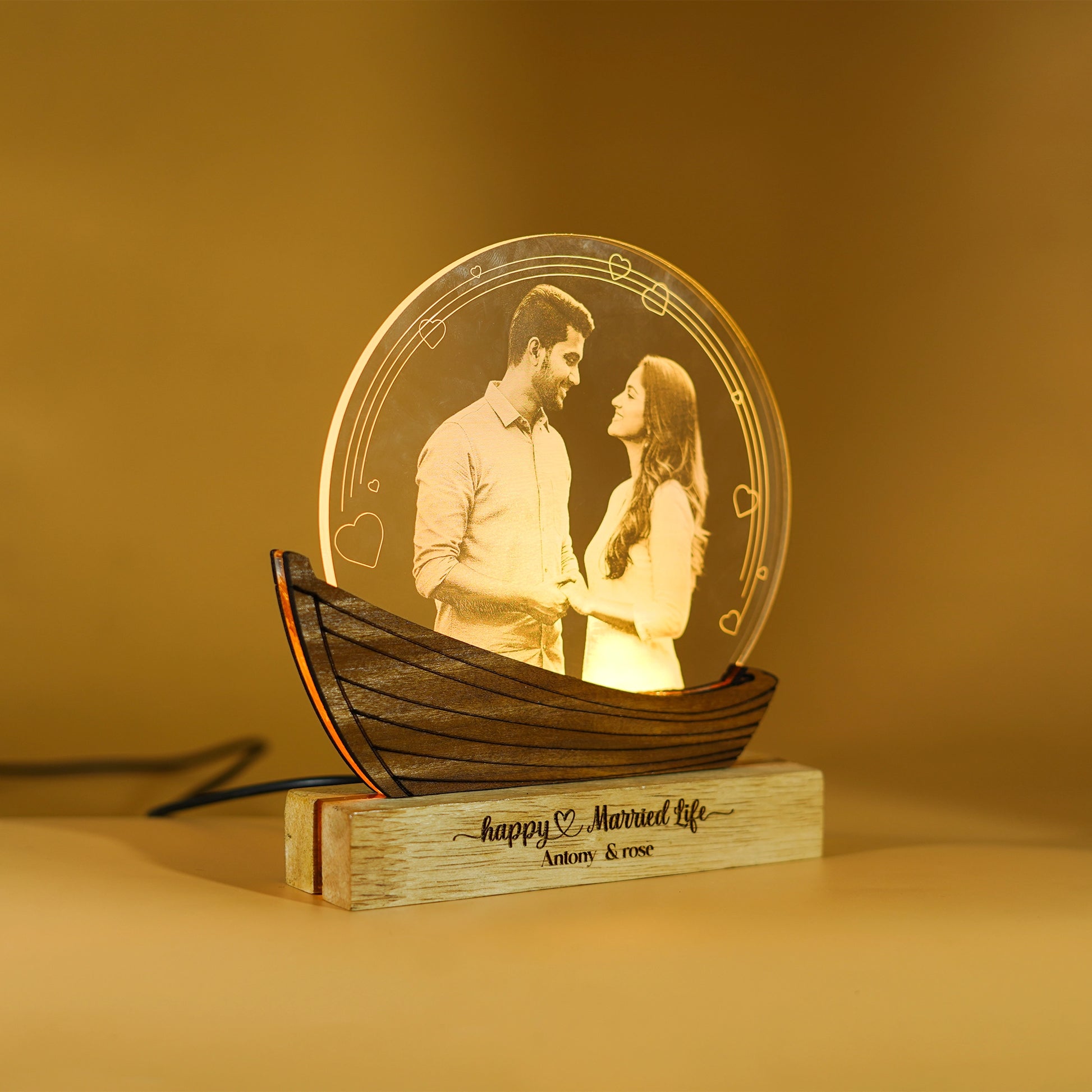 Customised Couple Photo Engraved 3D Love Boat Lamp | Night Lamp | Wedding Gift