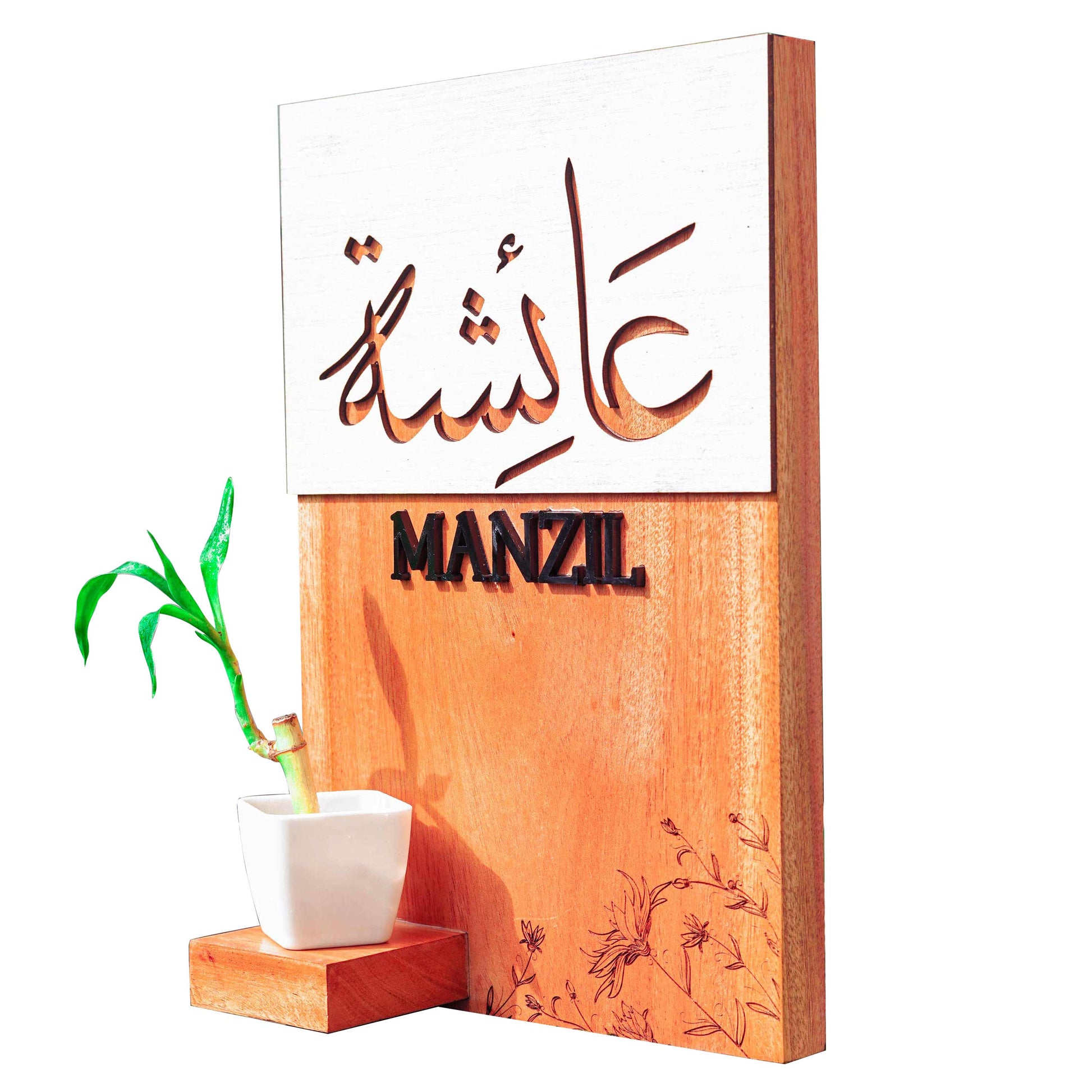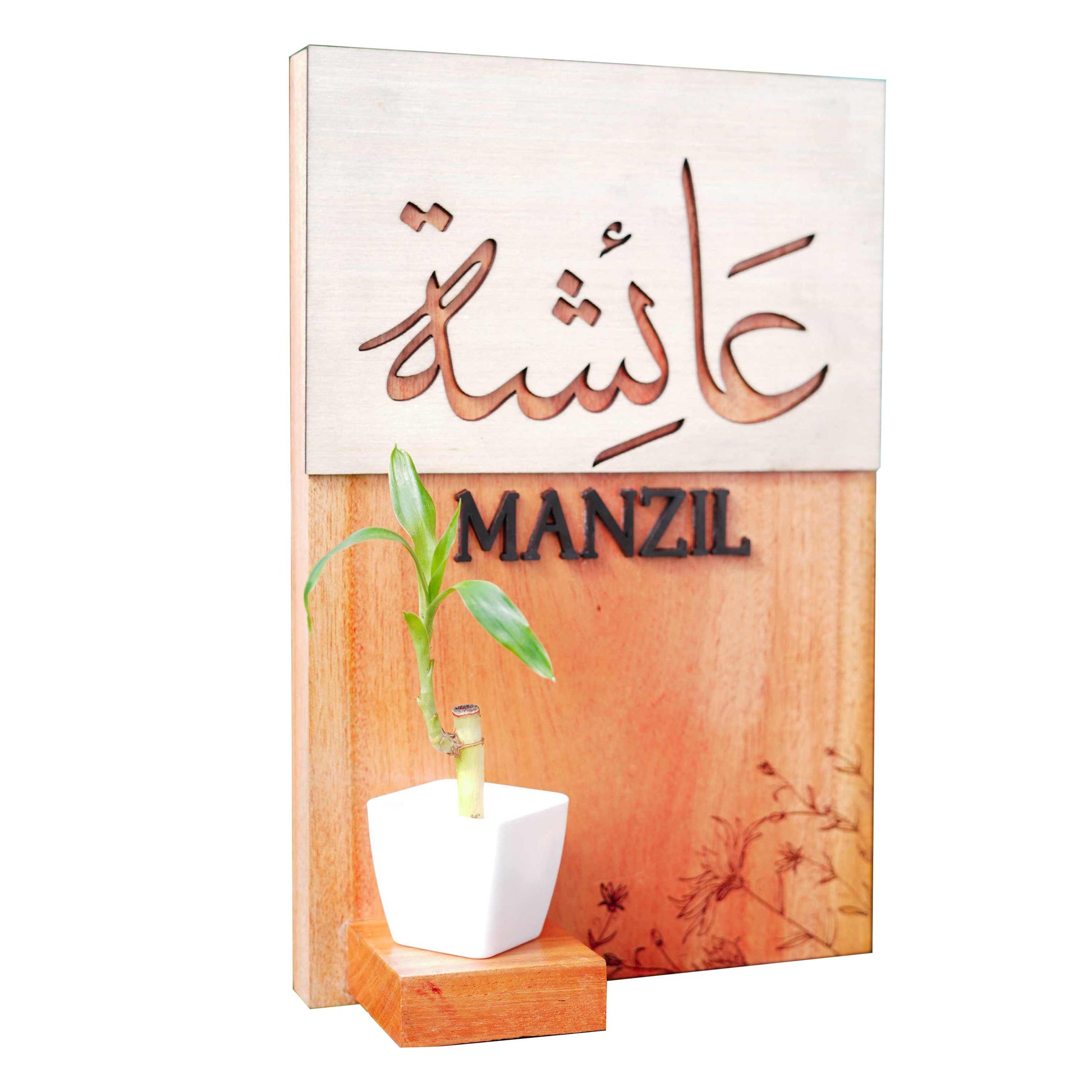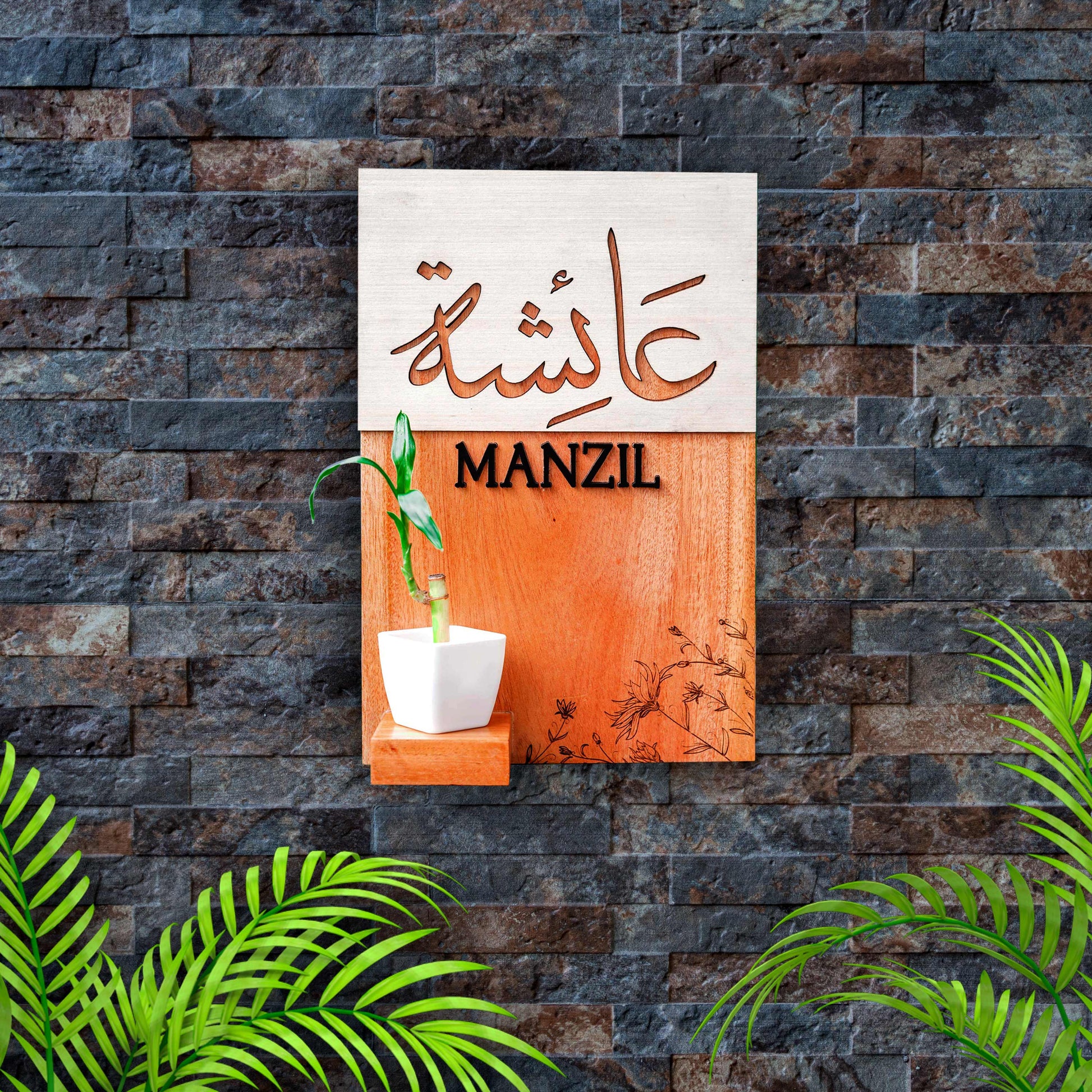 Indoor Wooden House Name Board with Plant Vase