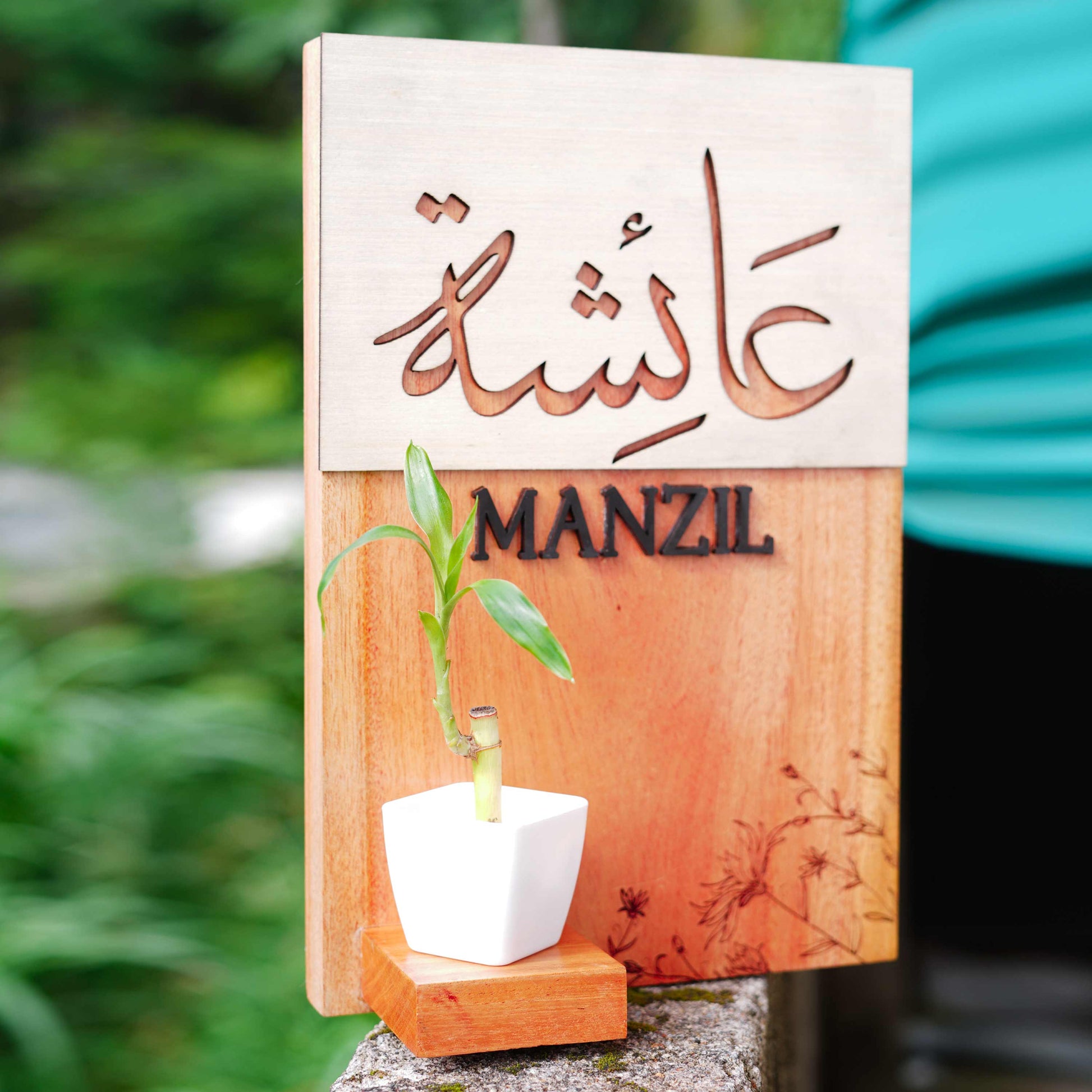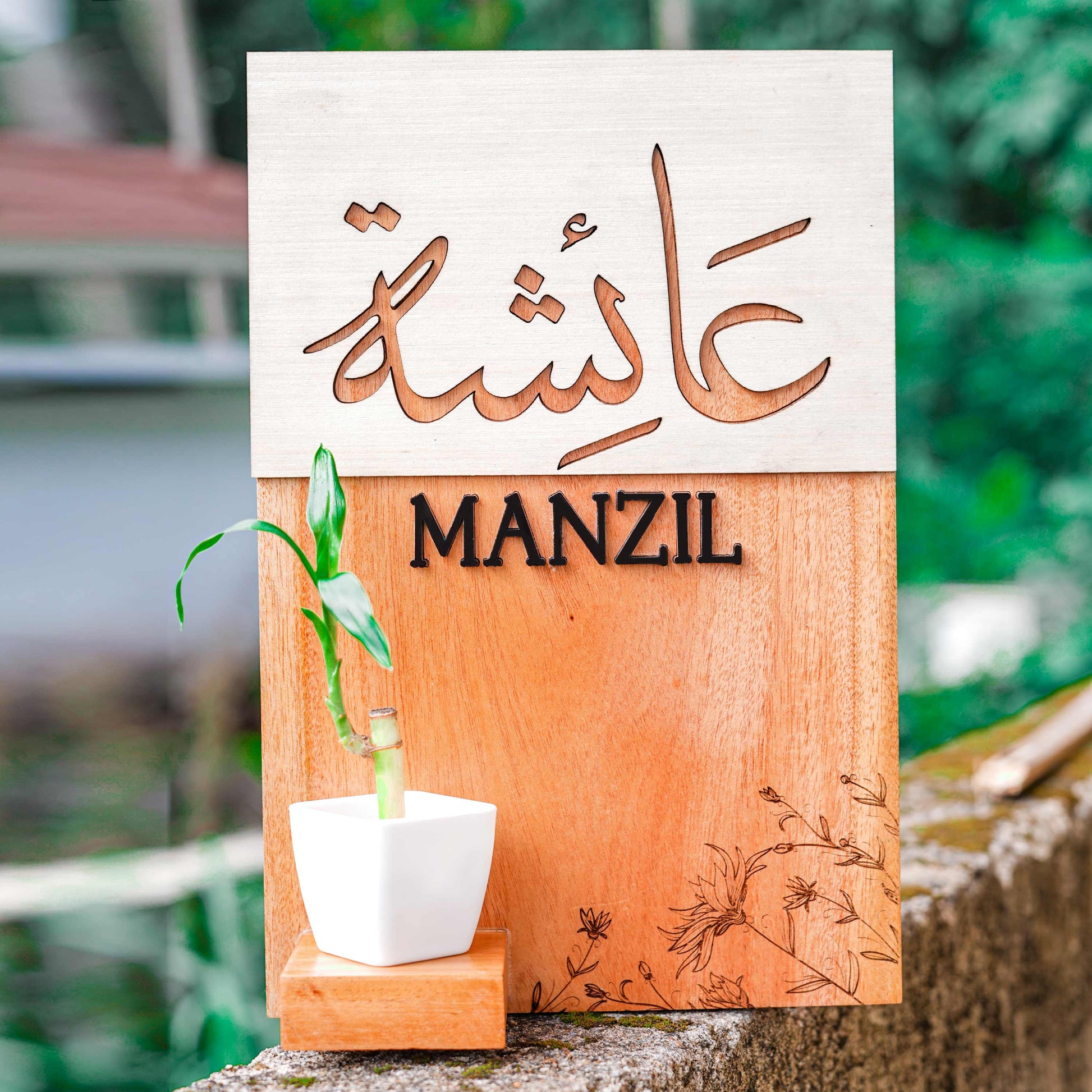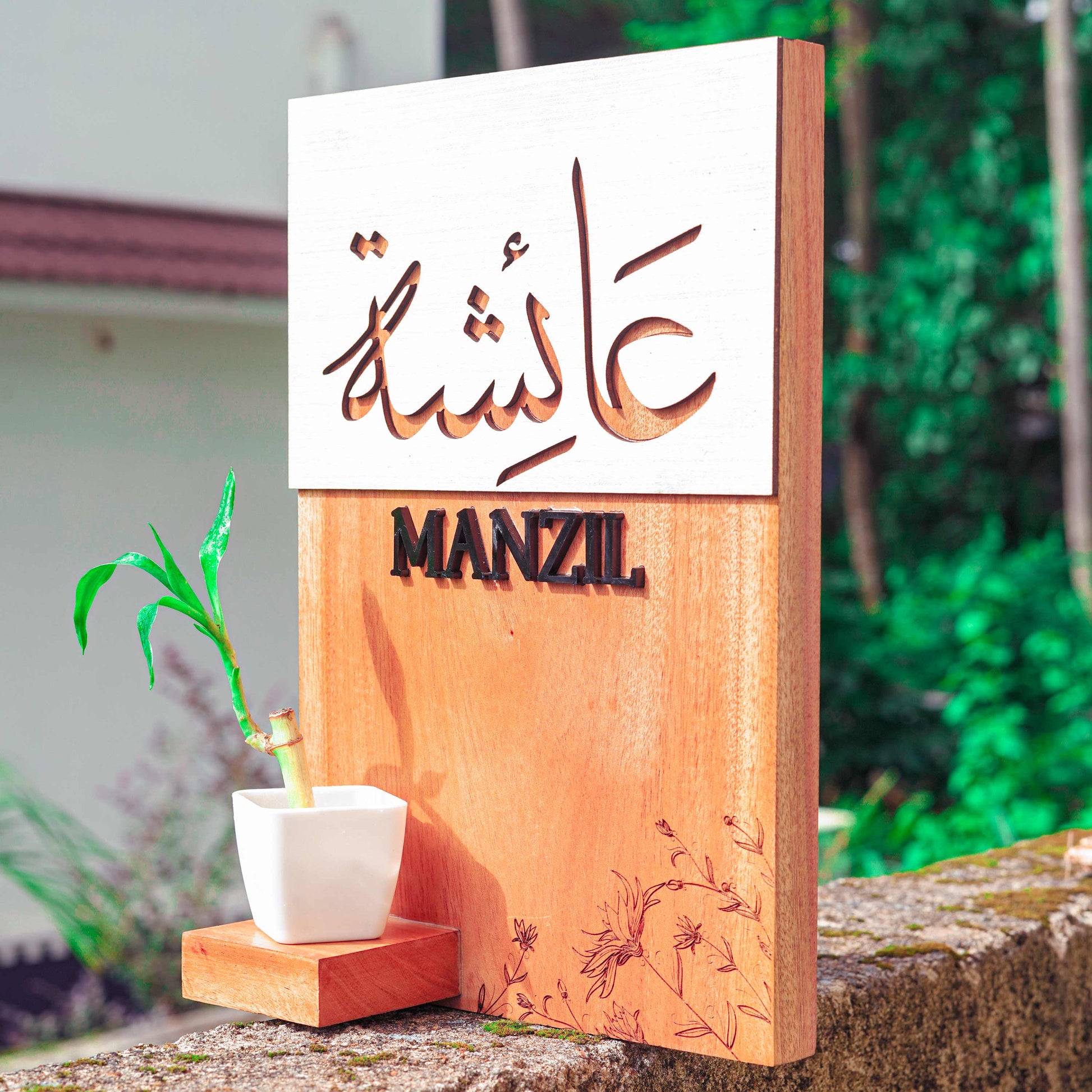 This personalized name board not only adds a touch of elegance but also offers a special spot to display your favorite indoor plants, creating a warm and inviting atmosphere.