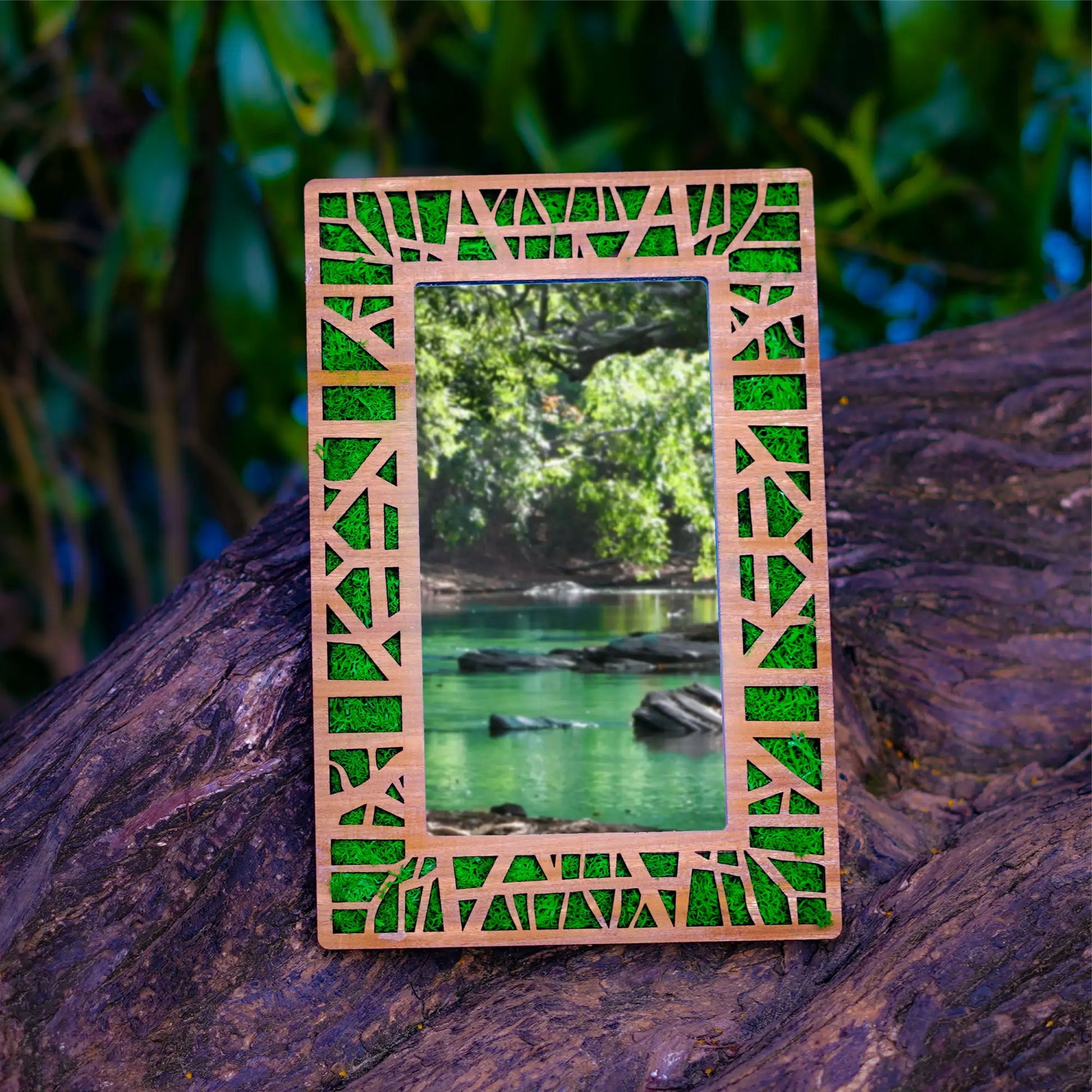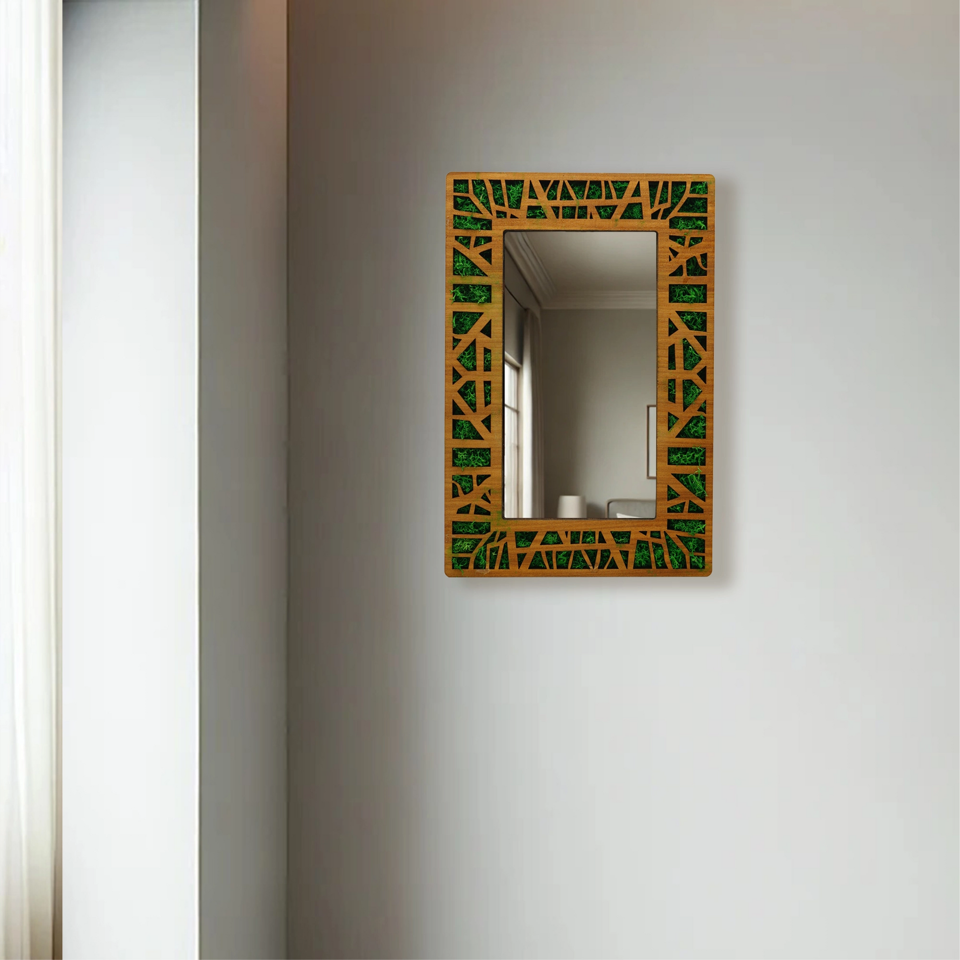 Bring the serenity of nature into your space with our Moss and Wood Combined Frame Mirror. Measuring 12x8 inches, this unique piece blends the lush texture of preserved moss grass with the timeless elegance of veneer wood. Perfect for wall decor, it adds a touch of the outdoors while serving as a functional mirror for daily use. Whether you're looking to enhance your entryway, living room, or bedroom, this mirror is a natural choice for creating a calming and sophisticated ambiance.