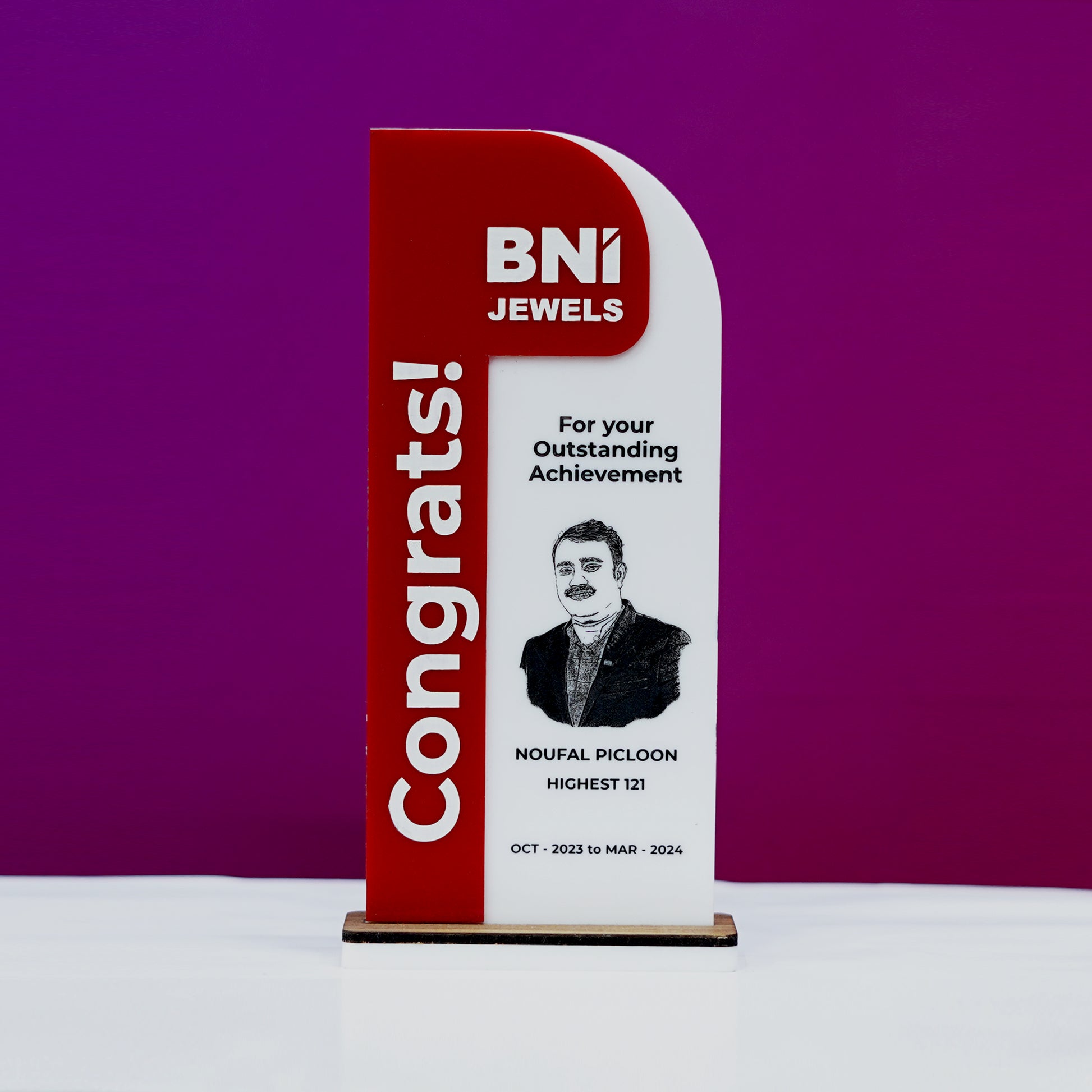 Durability: The combination of acrylic and veneer wood ensures long-lasting durability. The materials are chosen for their resistance to wear and tear, ensuring that the memento remains in pristine condition and continues to look elegant over time.